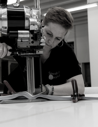 Szczególną rolę w całym procesie tworzenia produktu odgrywa zaplanowanie cięcia w taki sposób, aby zużycie tkaniny było efektywne. Nasza krojownia wyposażona jest w specjalistyczne programy do planowania układów kroju i w maszynę do cięcia tkanin, która w niezwykle ekonomiczny i przede wszystkim sprawny sposób kroi elementy przekazywane do szycia.