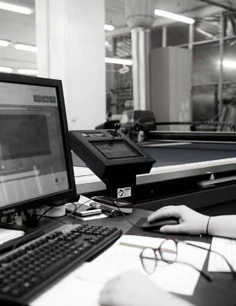 Krojownia wyposażona jest w automatyczną maszynę do cięcia tkanin. Jednowarstwowy cutter pozwala na efektywne krojenie nawet kilkuset metrów materiału dziennie. Dodatkowo jesteśmy wyposażeni w stanowiska do krojenia ręcznego oraz lagowarkę.