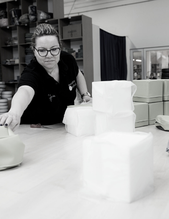 Zanim wyślemy towar do naszych klientów jest on kontrolowany pod względem jakości w dziale pakowania. To właśnie tam szczegółowo sprawdzany jest każdy szew i poprawność wykonania elementów. Zweryfikowane produkty, zapakowane w folię bądź kartony, są odpowiednio zabezpieczane i przewożone na magazyn. Po ustaleniu sposobu i terminu dostawy gotowe produkty wędrują do naszych klientów